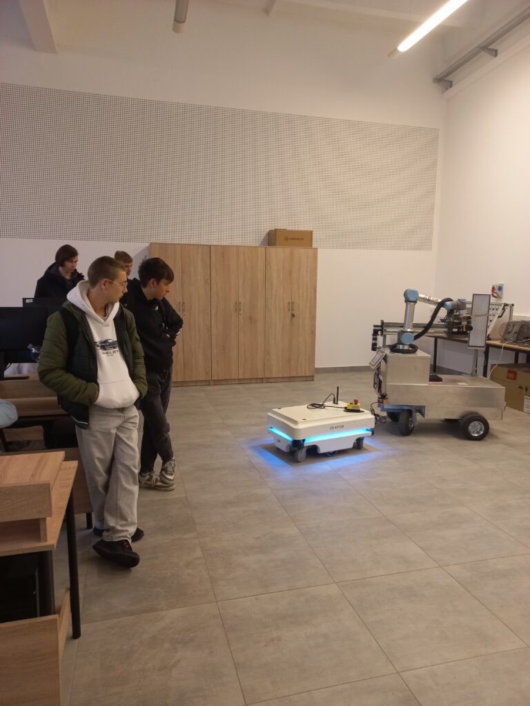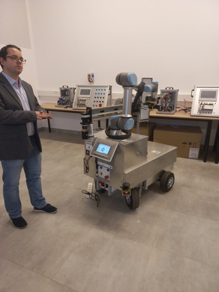 - Roboty przemysłowe bliżej człowieka – zwiedzanie wraz z prezentacją problematyki badawczej Laboratorium automatyki i robotyki.