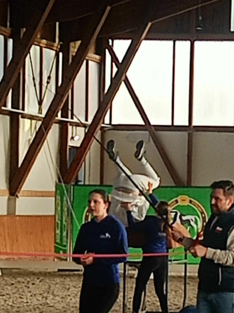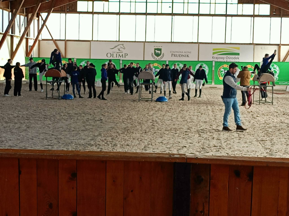 Uczniowie mogli również korzystać z nowoczesnego sprzętu szkoleniowego, podczas wydarzenia uczestnicy ćwiczyli także na specjalnym symulatorze jazdy konnej. To urządzenie pozwala poprawić dosiad i pracę pomocy jeździeckich.