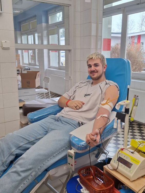 17 marca 2026 r. Igor Jałocha, Oskar Postrożny i Mateusz Strasz z klasy V TR oraz pan Piotr Lozia – pracownik naszej szkoły – honorowo oddali krew w Regionalnym Centrum Krwiodawstwa i Krwiolecznictwa w Kielcach.