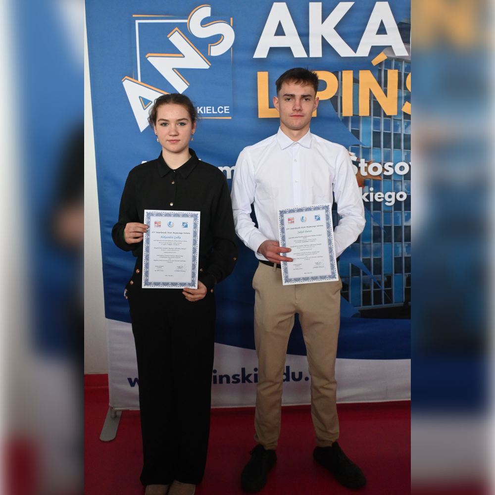 Integralną częścią wydarzenia było podsumowanie wojewódzkiego konkursu zatytułowanego „Stwórzmy razem lepszy cyfrowy świat”, w którym nasi uczniowie również brali udział. Z radością informujemy, że ich zaangażowanie i wysoki poziom przygotowania zostały docenione przez jurorów – Alekasandra Gałka i Magdalena Komender zajęły II miejsce, a Jakub Baran po raz kolejny otrzymał wyróżnienie.