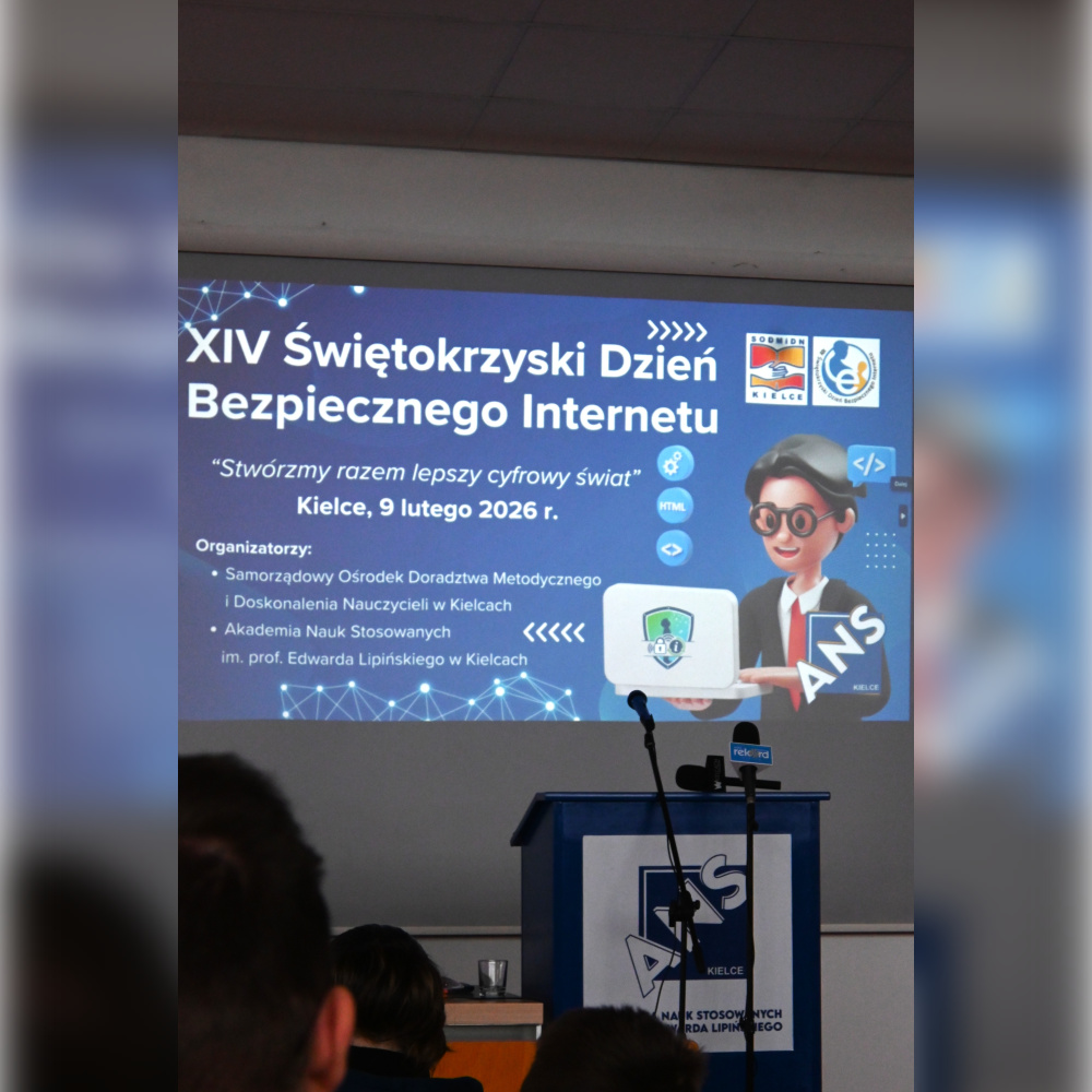 Dnia 9 lutego nasi uczniowie Jakub Baran oraz Aleksandra Gałka pod opieką pani Anny Koteckiej wzięli udział w obchodach XIV Świętokrzyskiego Dnia Bezpiecznego Internetu organizowanym przez Akademię Nauk Stosownych im. prof. Edwarda Lipińskiego w Kielcach oraz Samorządowy Ośrodek Doradztwa Metodycznego i Doskonalenia Nauczycieli w Kielcach.